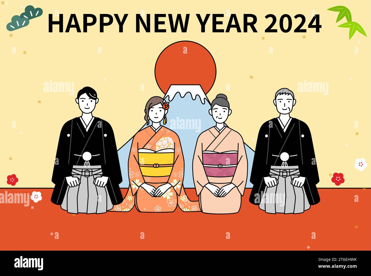 New Year's card for 2024, family in kimonos, Mt. Fuji and the first , From classic family poses to playful pet snaps, from winter wonderlands to cityscapes,.